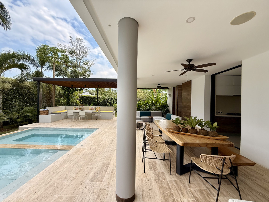Esta espectacular casa en condominio, expresa modernidad, atemporalidad y buen gusto en cada uno de sus ambientes. Rodeada de exuberante verde en sus 1.200 M2 en el mejor lugar del sur de Cali. Área Casa 360 M2, 3 habitaciones con baño y vestier, Family Room, Estudio, Cocina integrada a zona exterior, Piscina con Jacuzzi, Terraza, Habitación de Servicio co baño, 2 Parqueaderos cubiertos, Administración incluye agua y jardinero dos veces al mes.